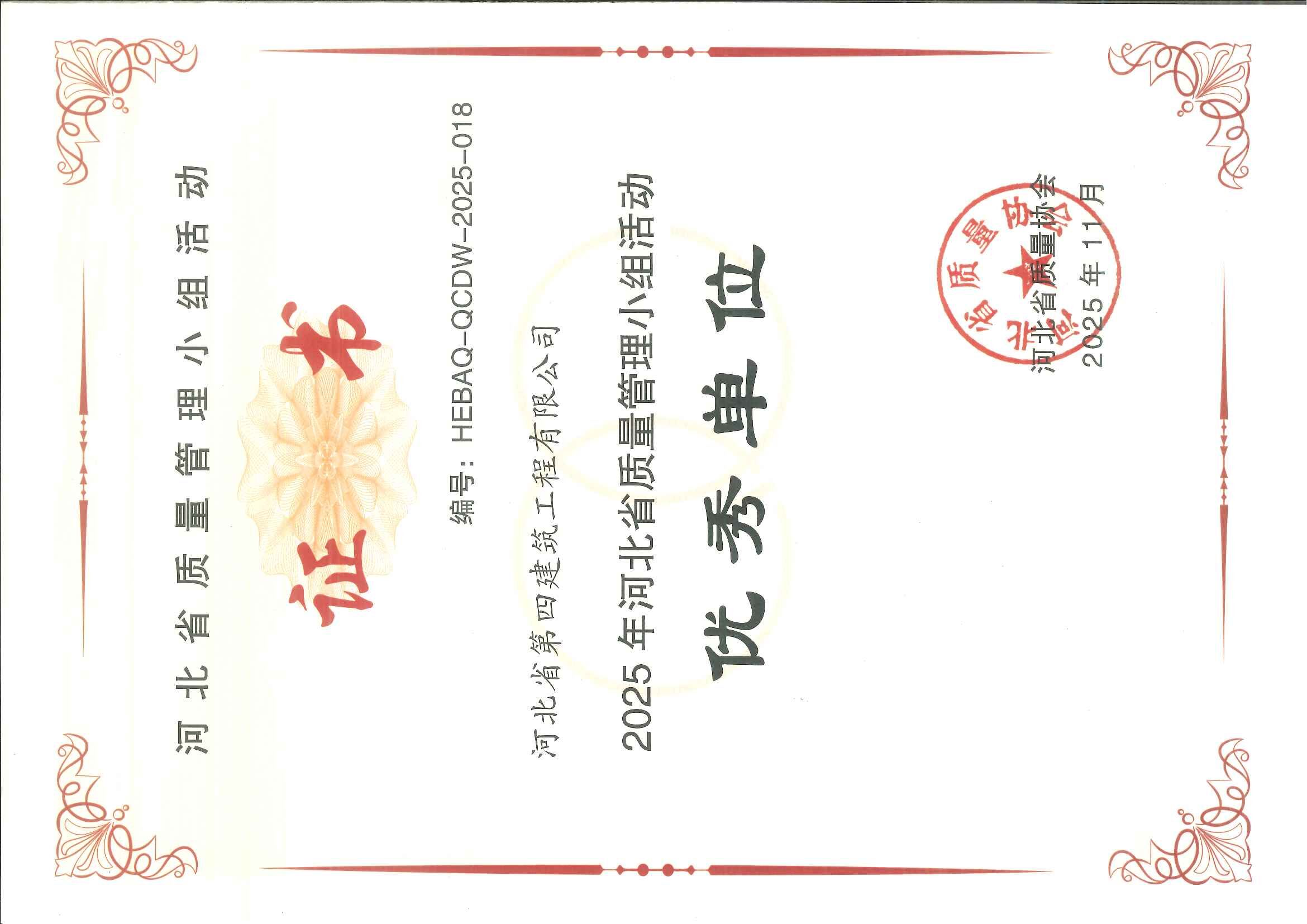 河北四建:2025年河北省建筑业质量管理小组活动最佳组织单位